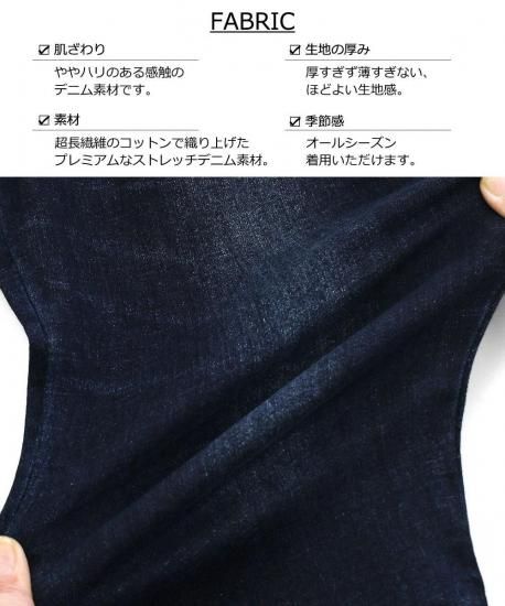 超長繊維のコットンで織り上げたプレミアムなデニム生地は、