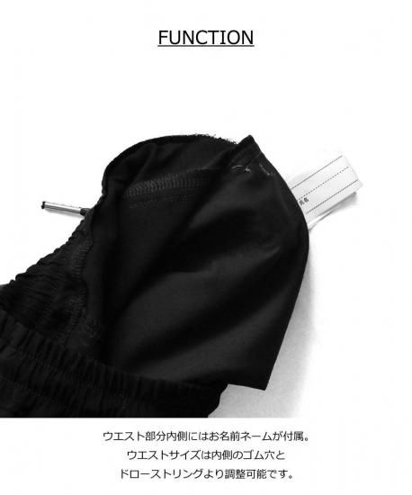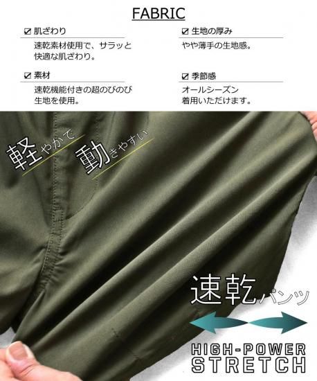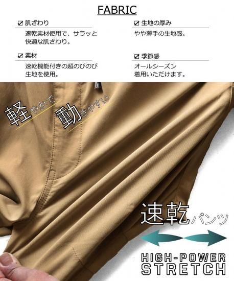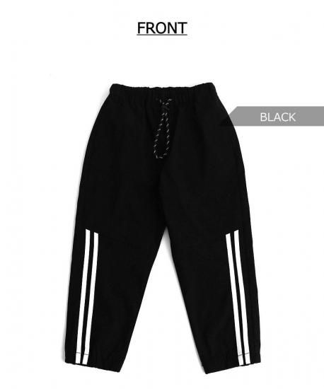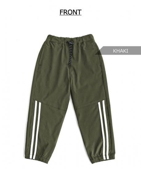 スポーティーなハイテンションナイロン混ののびのび速乾素材を使用したジョガーパンツ。