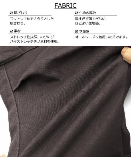 ゆったりとしたシルエットとストレッチ性抜群のチノ素材、