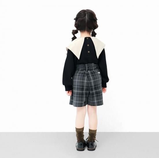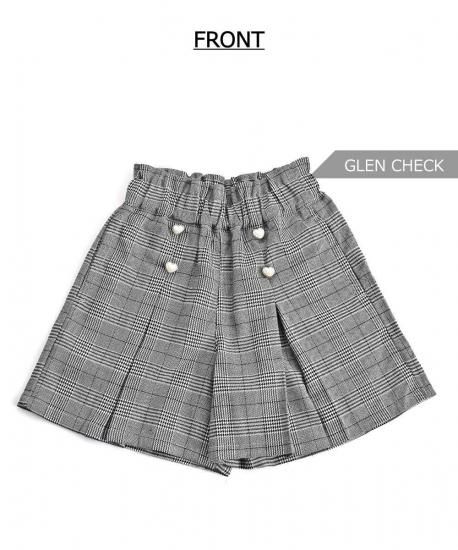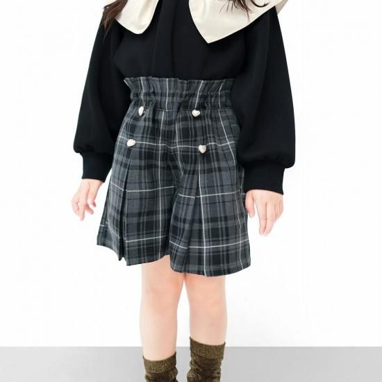 チェック柄織地が上品な雰囲気のキュロットパンツ。