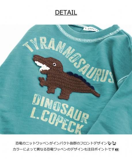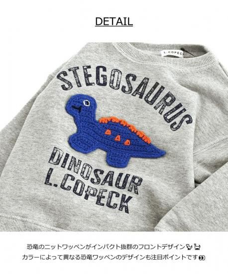 恐竜の大きなニットワッペンがインパクト抜群で、